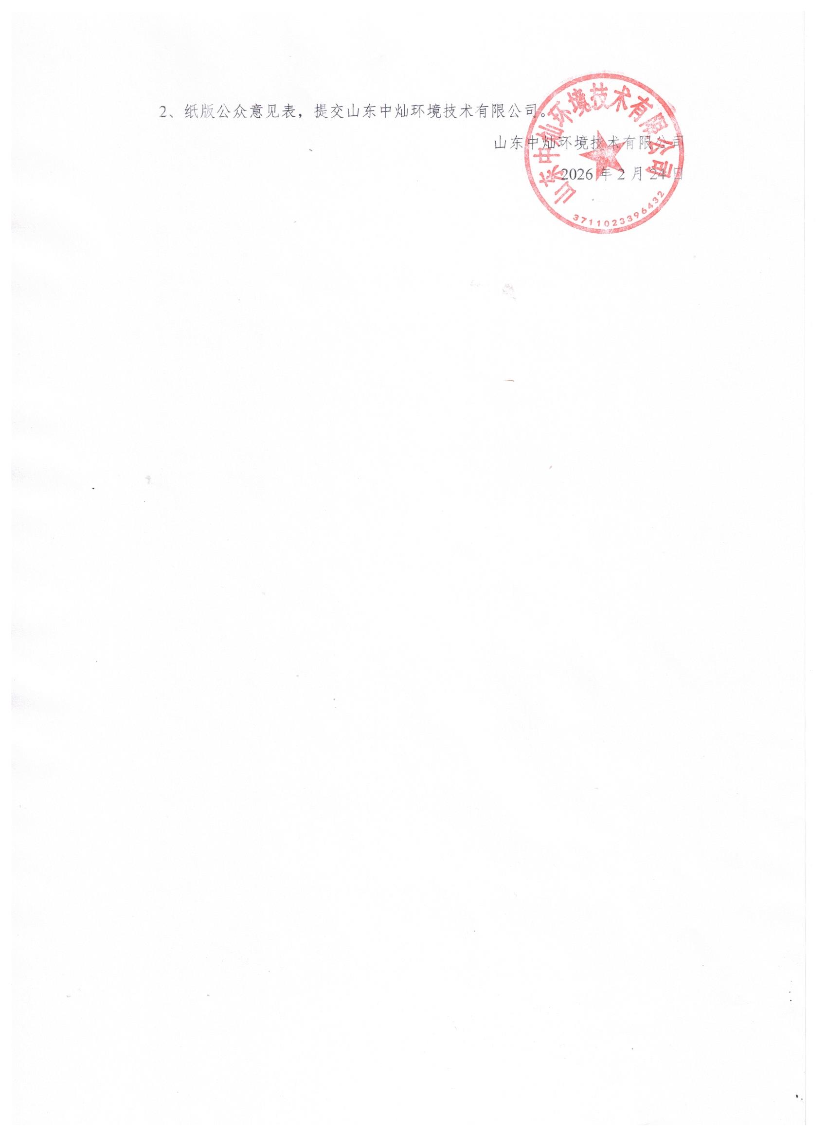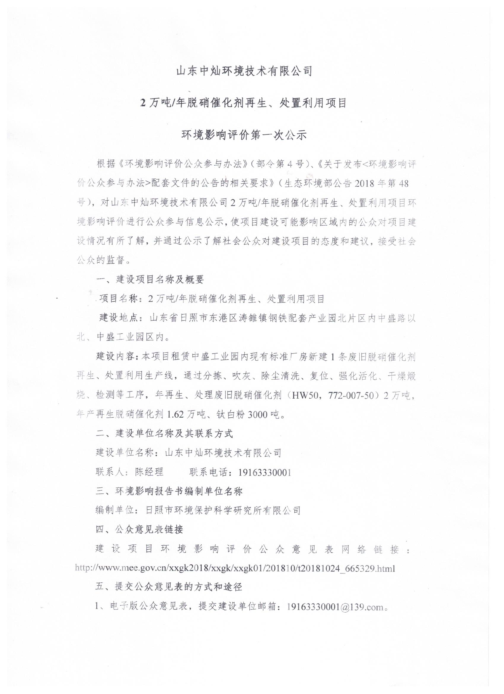 山东中灿环境技术有限公司 2万吨/年脱硝催化剂再生、处置利用项目 环境影响评价第一次公示
